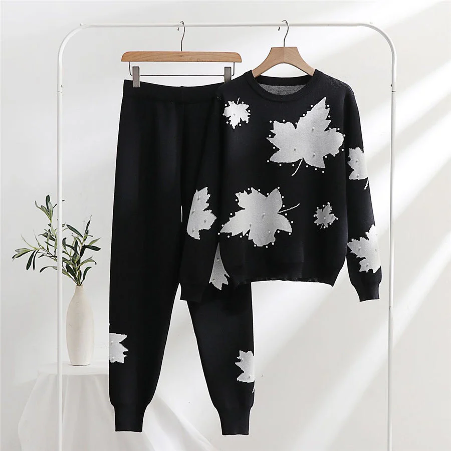 Zayra Pearls Work White Leaf Printed Premium Quality Winter 2-Pcs Tracksuit For Her. WWTS-02